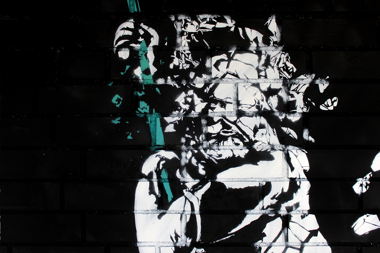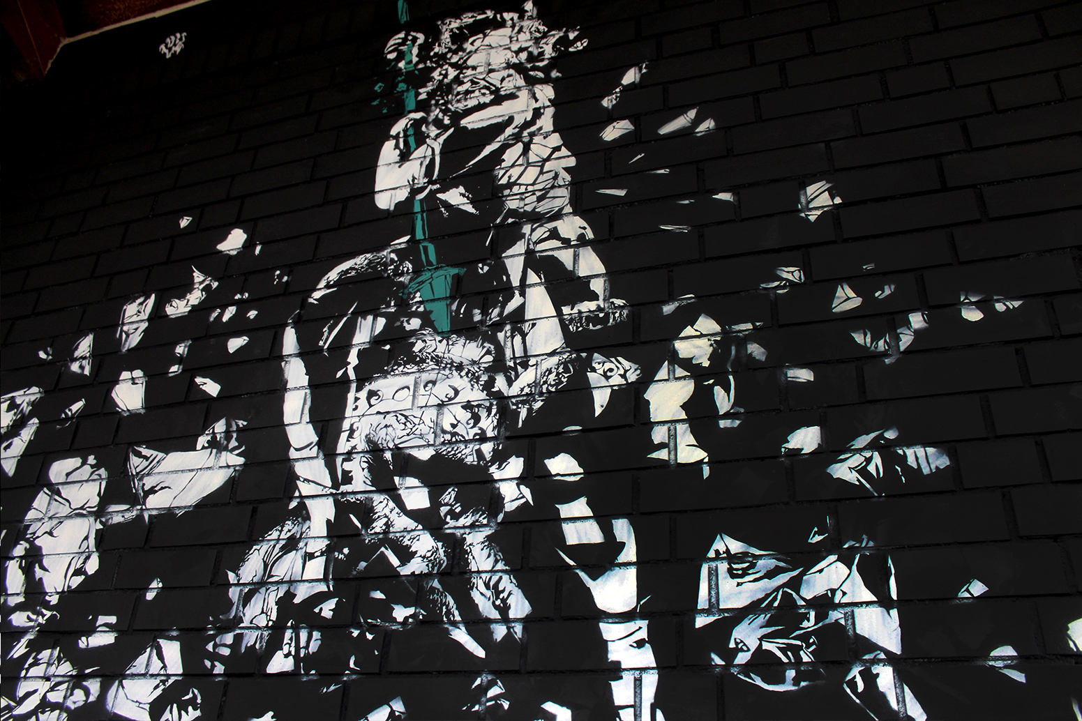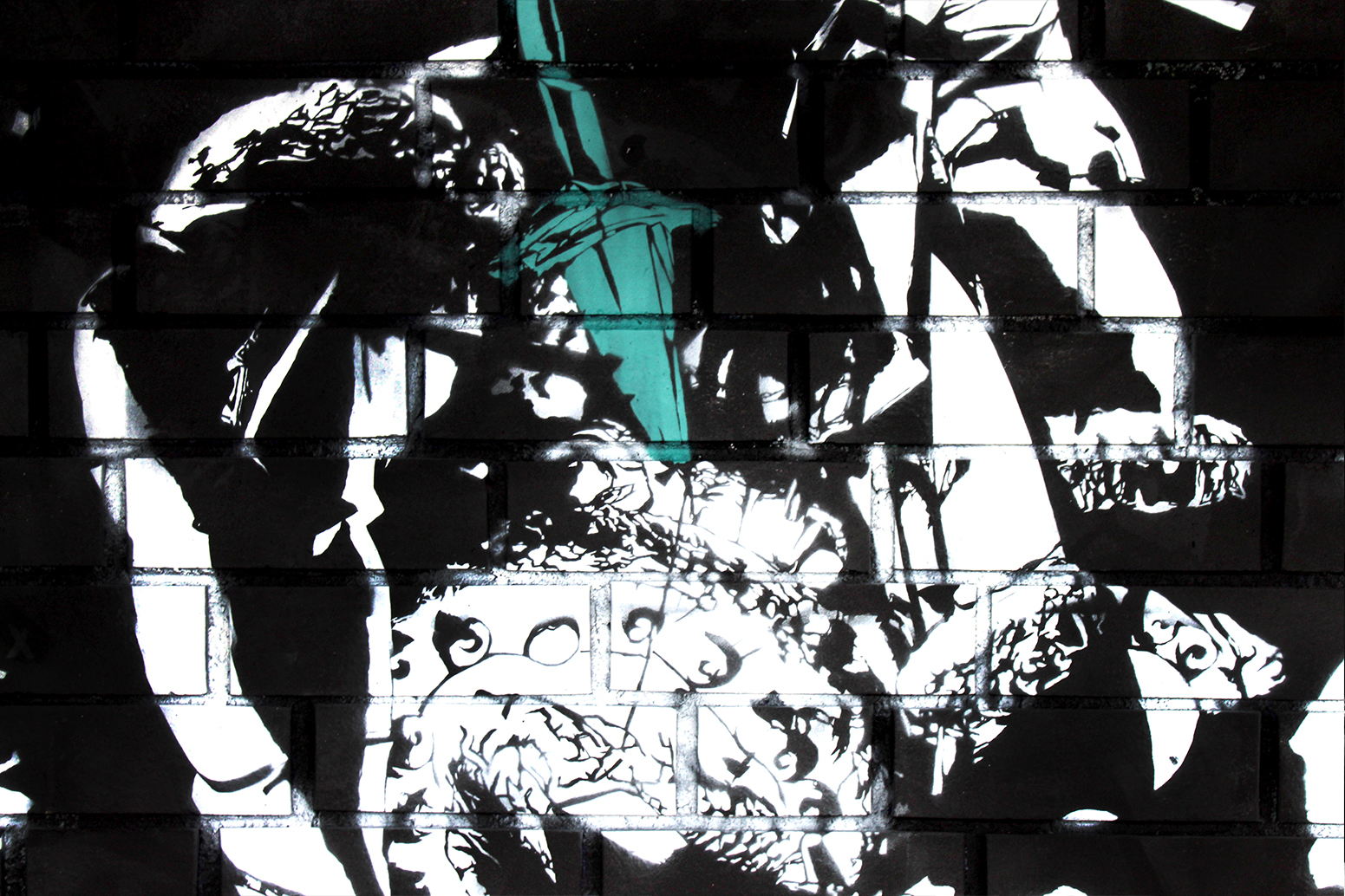 250 x 320cm Hand-cut stencils, spray painted on wall